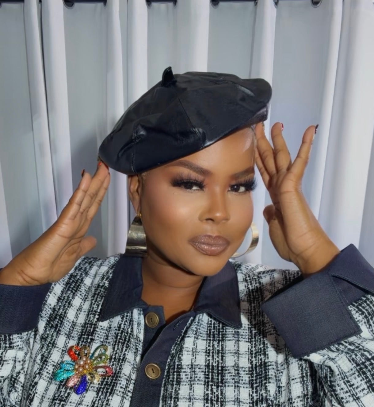 Our Faux Leather Beret is the statement accessory your wardrobe didn’t know it needed — chic, preppy, polished, and full of Parisian charm. Whether you're styling it with a blazer, sweater dress, or jeans, this beret instantly elevates your look and gives that soft luxury finish.